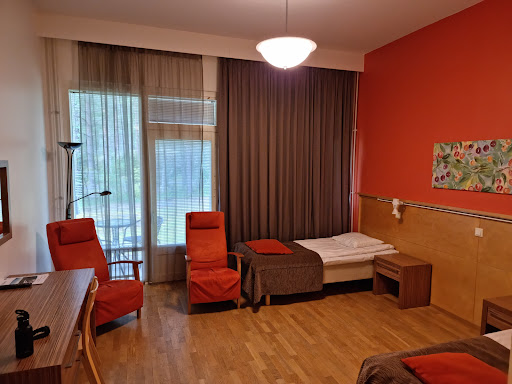 Read moreSairaalafiilis, kuten kuntoutuskeskuksessa voi kuvitellakkin. Ei ravintolapalveluita tai iltaohjelmaa. Alkoholia kyllä saa, mutta ruokaa ei listalta. Eli omat eväät oltava. Kuntoutujille tarjolla lounas ja päivällinen rajoitetun ajan. Liian myöhään tulltiin, päivällisen nakit ja ranskalaiset meni sivu suun. Aamupala vaatimaton, puuroa ja sämpylöitä, nuutuneita omenoita. Hotellihinnalla retkeilymajatasoa. Ei ole hinta-laatu kohdillaan. Ei lomalaisen ykköspaikka, tarjoilut Kela-kuntoutuksen mukaiset. Kapeat perusjoustinsängyt, tilava huone. Ilmastointi...