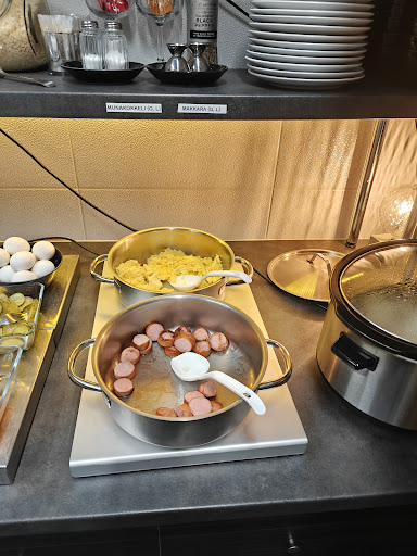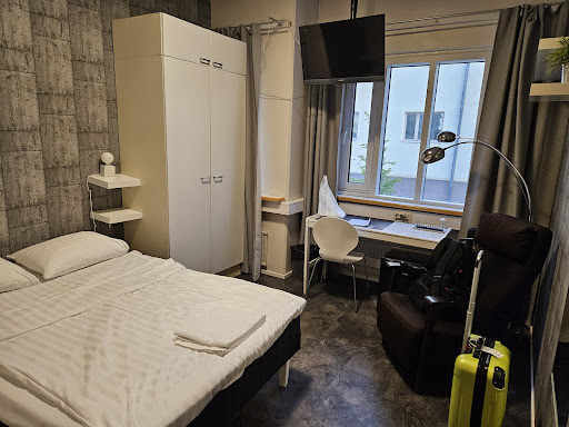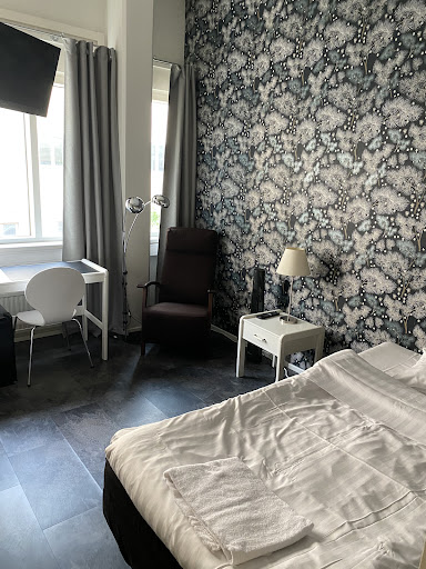 Read moreFirst thing, that caught our eye is color of the room walls - it was rather dark background with black symbols, which made the room rather dark - I enjoyed it, my collegaue not that much. Fortunatelly windows were big enough to let some light in. Overall the hotel is solid, with average breakfasts. The staff is very friendly, and speaks english. The location is great, just 5 mins from Old Rauma right next to the...