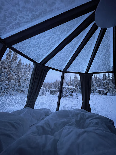 Read moreWhat a beautiful location! Whilst the hut is small it seems very spacious. Lots of storage everywhere and we got given a tour when we arrived just to explain hiw everything works.||We know there would only be a composite toilet and no shower facilities. I am used to having a wash in the sauna so this was not new. ||We were given instructions at check in to book the Sauna and we were even able to have a night sauna which was very needed after a late northern light tour! Just make sure you have plenty of wood to keep it going!||We were also lucky to see the Northern Lights one night albeit it was at around 3am!||The only downside was that there was no lunch and no shop nearby so you had to make sure you had snacks or something to eat to get through as a 80 euro round-trip to town doesn't seem worth it. I would recommend to set up a small selection of things for visitors to buy at reception like chocolate bars, crisps, drinks, Muesli bars etc ||However, I have to say both breakfast and dinner were lovely so hats off to the chefs! Both cooked on open fire and so delicious. The waiter we had on both nights (from New Zealand) was also super lovely!||We did the snowmobile safari which was great. I'm 26 weeks pregnant and they did say it was not recommended due to bumps and possible accidents however i felt super safe in the sled and it was really smooth! I wouldn't risk driving one but my husband did and he had a great time! M||All the staff there were wonderful and always happy to help and the transfer option from Nova skyland was great as we were then able to go spend time at the santa claus village before our...