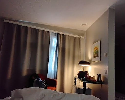 Pois lähtiessä ei respa ollutkaan auki ja siivooja pyysi avaimen. Meillä oli toinen matkalaukku yläkerrassa ja minä jouduin seisomaan ovien välissä silläaikaa kun mieheni sen haki. Aika niukalla henkilökunnalla hotellia pyöritetään ja siihen nähden huoneen hinta oli korkea.