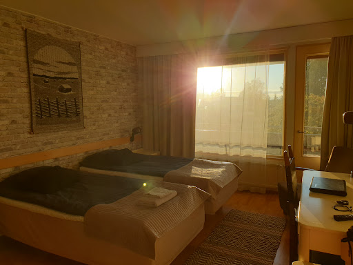 Majoitus Hermanni, oiva paikka, jos haluaa mukavan, edullisen, mutta kuitenkin hyvĂ€n majoituspaikan alueelta, NĂ€rpiö, Kauhajoki, Jurva ovat aivan lĂ€hellĂ€. Pihassa, myös talon takana on riittĂ€vĂ€sti pysĂ€köintipaikkoja, myös invapaikkoja löytyy. Itse vastaanotto on hieman poikkeavasti toisessa kerroksessa, jonne pÀÀsee sekĂ€ hissillĂ€ ettĂ€ portaitten kautta. Tilat ovat erittĂ€in siistit, tietty retrohenkisyys nĂ€kyy, mutta sopii mainiosti kokonaisuuteen. Huoneet ovat tilavia, siististi kalustettuja, puhtaita sekĂ€ savuttomia đđđđđ Useita tiloja, myös monista huoneista löytyy tarvikkeita omatoimiseen ruokailun jĂ€rjestĂ€miseen, huoneista löytyy televisiot ja talon wifi verkko on vapaa. Saunaosasto viihtyisĂ€, hyvin talon henkeen sopiva. Itse majoituspaikka soveltuu pienin rajoituksin myös liikuntarajoitteisille. Henkilökunta on mielestĂ€ni se talon suola, tÀÀllĂ€ aivan loistava, lĂ€mminhenkinen, palvelualtis, enkĂ€ epĂ€ile etteikö miltei mikĂ€ vain voisi onnistua, jos asiakas jotain toivoo. TĂ€hdet ovat tĂ€ssĂ€ paikassa hieman vaikeat arvioitavat, jos tĂ€mĂ€ olisi hotelli ja varustus hieman korkeampi, voisi olla tĂ€htiĂ€...