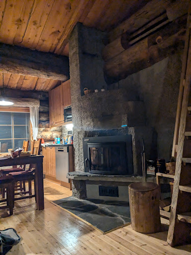 The hut is very nice and traditional, made with wood logs but nevertheless well insulated. Kitchen and toilet are quite modern and there is a nice sauna incorporated. The area is quite nice, quiet and you can reach the slopes on foot or by bus; if you're particularly lucky you can see the northern lights! Might be tiny for more...