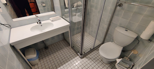 pros: near the ferry terminal(20 meters between buildinds) no car noise at night. some diesel sound in far, not more room was big, includes fridge(tiny), shower in toilet