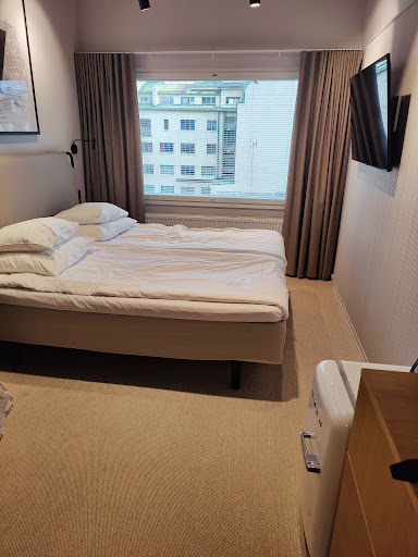 Read moreThe hotel is in the very centre, the market square in front of the hotel. Wal to the river and shops and bars and restaurans is 5min max. The room we had was a bit dated but clean and bigger than usual rooms. The bathroom could use some update but we were ok. The windows do not open at all so all we had was aircon so we did miss the fresh air and the aircon air felt a bit stuffy. The rooftop bar service friday night felt like the 2 bartenders would have preferred we hadnt arrived there. They were so uninterested that i almost felt bad for them. If the hotel would want they could turn this to the bar of Turku if they would get some decent bartenders. Breakfast was ok and there was enough food, the hotel was fully booked but the breakfast was not too crowded. Overall experience was good, i...