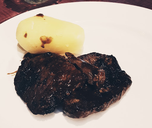 Lämminruokavalikoima: nahistuneet verkkoperunat, nahistuneet ranskalaiset, umpikumiperunoita (miten niihin on saatukin sellainen tiukka kumipinta🤔), teolliset kaalikääryleet, possunpihvit kastikkeessa. Possunfileet oli 2-4milliä paksuja mustia, kuivuneita lätkiä, kastike kuivunutta. Jälkiruoan pullavanukasta en enää ilennyt ottaa.