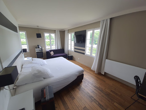 Read moreThis was our second trip to Les Corderies, which is a lovely modern hotel with fantastic views.||We stayed in a Stunning View room, on the first floor of the spa annex. The views are indeed stunning from the Juliet balcony. The room design is very stark, which makes the view the focus. The bed was super king size and comfortable. The shower room and separate loo were very nice, with good toiletries.||We had great weather, so enjoyed a drink in the garden both evenings - more great views over the estuary and lovely surroundings. We also enjoyed a late evening Calvados in the garden, with lovely service from the lady who was also working on the reception.||Our only quibble was that we found the dinner to be overpriced. With starters at about €18 and mains at €39, we were expecting some great things. In fact, my cod and my partner’s steak dishes were not very special. Nothing to warrant a complaint at the time, but disappointing. ||Breakfast was very good, with a wide selection of continental options and some enticing...