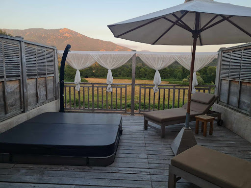 Read moreUn week-end merveilleux. Pour nos 20 ans de mariage, nous avons décidé de rester en Corse ou nous résidons pour passer un week-end en amoureux. Belle résidence, tenue par un couple très sympathique, disponibles, professionnels et aux petits soins pour leurs clients. L'extérieur est parfaitement en corrélation avec ce que nous cherchions, pas de vis à vis, les lieux sont arborés de palmiers et arbres exotiques qui transportent tout de suite au bien-être d'un week-end réussi. La décoration des lieux est un voyage au cœur de Bali. Belle décoration, cuisine d'été semie-ouverte totalement équipée mise à disposition. Le mobilier extérieur est une invitation aux bains de soleil et farniente. La belle piscine face à cette belle résidence vient rythmer l'authenticité des lieux. Nous avons opté pour une nuit dans une suite avec terrasse et son jacuzzi privatif. La chambre est magnifique, irreprochablement propre, lumineuse et fonctionnelle, au mobilier de Bali, tv, coffre-fort, minifrigo, belle salle de bain et literie douce et confortable. La propreté est au rendez-vous. La terrasse est spacieuse, vue sur les montagnes d'Ajaccio, terrasse en bois, transats, parasol, et mobilier divers, le tout équipé d'un grand jacuzzi, le top. Le calme est appréciable, un agréable moment. Petite déjeuner pris au bord de la piscine avec fruits frais et produits complets. Je recommande cet endroit, nous résidons en Corse et venir ici à été un vrai plaisir . Nos hôtes ont été d'une grande gentillesse et d'une grande disponibilité, ce qui est rassurant et ce qui met en confiance. J'attends avec impatience mes prochains repos pour profiter à nouveau de cet endroit enchanteur. Sommes repartis avec les belles tomates du potagers, offertes par nos hôtes, qui sont excellentes. Je recommande fortement...