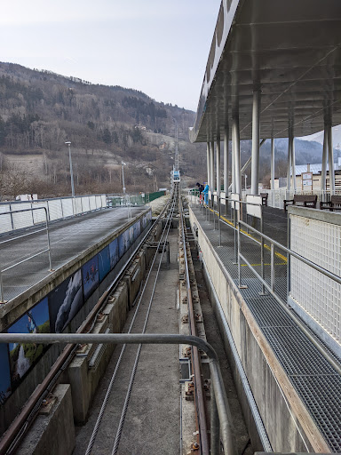 It's a funicular railway from Bourg Saint Maurice to Les Arcs 1600. If it were 300 metres longer it would be right by the train station in B-S-M but as it is you have to walk the length of the station. This sounds no big deal until you have a heavy suitcase of ski stuff and you then are faced with the choice of the bridge with only steps at the far far end of the platform or a long push down the station and then along the road. The train itself is ace! All nice and funky French modern design and what a fabulous way to get up to the resort where the free busses then...