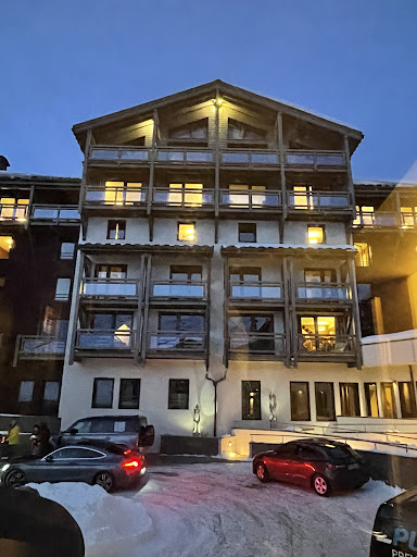 Labelled as ski-in ski-out, it is, but the initial slope is a really challenging blue, so impossible for the beginners in our group. Rooms were nice and tidy. No bedside tables. Bad lighting. No hooks in rooms for jackets. Window only just shut, loose fitting. Mattress was too firm. Apartment had a kitchen, but no washing up liquid, sponge, tea towel, oven glove etc, very little toilet roll so have to wait for cleaners to top up every time, lack of basics.