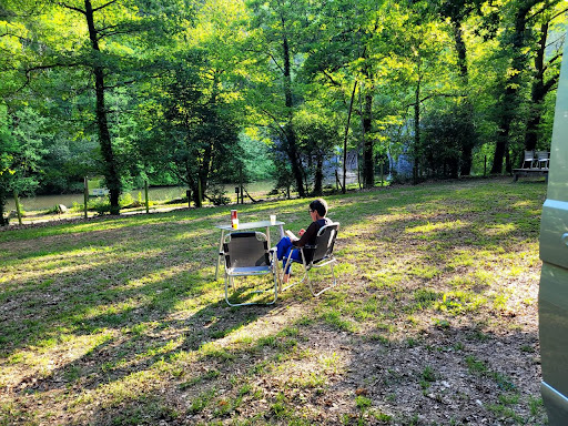 Read moreWir (2Erw, 2 K + Hund im Wohnmobil 6m LĂ€nge) waren zwei NĂ€chte an diesem kleinen, familiĂ€ren, mit Liebe (zum Detail) gefĂŒhrten Platz. Es ist trotz Familien sehr ruhig dort, obwohl keine Regeln zur Nachtruhe ausgewiesen sind. Es gibt neben Safarizelten (mit KĂŒhlschrank und Sitzmöglichkeiten auf einer kleinen Terrasse) auch etwa 20 groĂzĂŒgige, schattige StellplĂ€tze unter Eichen, viele davon mit Blick auf den Fluss. Wasser und ElektrizitĂ€t vorhanden, keine Schwarz- Grauwasserentleerung.