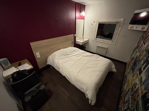 Read moreIf you have room take a fan with you these hotels have no air con' just a window . If you are on the ground floor you may not be comfortable with that wide open. The flurecent light throws out more heat so you sit in the dark to keep cool. They do get very hot inside. One couple were laid on the bed with door and window open in their undies!!. I don't know what make they wore I didn't stop to look.. The building is a mess. Our door was loose and needed to be rammed to open it. A passing French chap saw us struggling to get in having entered the code. He stopped took over and rammed the door open. Electric power point hanging out of the walls along the hall ways paint tatty,the odd sections of carpet they have were stained. Its verging on being a dump. If you book on lowest price deal double check dates before you press the button to confirm. I booked our return dates at the same time and put the out going date by mistake. Thus had two rooms. No way would they change the date or refund a cent. This was a few minuets after I booked. My fault. Has the normal branded places to eat near by. Breakfast is bread and jam/preserves, cornflakes etc, coffee and oj. Not suitable in any way for...
