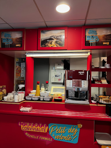 We pre paid for the breakfast âbuffetâ, which consists of baguette bits, corn flakes, baguette bits, yoghurt pots (sometimes), sliced bread and more baguettes. One day I arrived 15/20 minutes before it closed only to be berated for coming late. The receptionist then plied me with the remaining baguette bits relieving the bin of its duty. The breakfast is not really worth the money, and there are far too few seats.