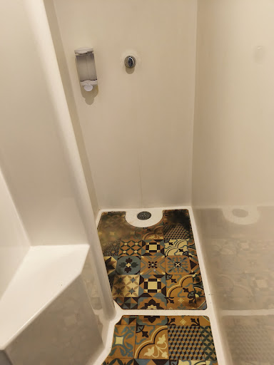 The toilets are constantly wet as they are self cleaning. There are also no sinks attached to the toilets so any washing has to be done in the room, which is a great way to spread germs! No towels or soap is provided. The showers require the user to sporadically press the button to keep it going. It feels a bit like being waterboarded as the shower head is stuck at an odd angle. I would advise to give it a quick clean before use. I would also advice crocs or sandals as there is only a wooden floor between the shower cubicle and the room, so it tends to get wet, and oneâs feet pick up all manner of interesting objects!