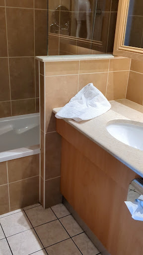 Read moreThe hotel is ok. Not as bad as I feared yet still nothing to get excited about. The rooms are generously big for France but feel old and dated. We booked a “superior room” and it had a nice view of the river with a terrace large enough for one person at a time to stand. No room for a chair or table. The door to the terrace has a convenient shade that opens and closes electronically from the bed. The toilet is in a separate room from the shower/tub room which many couples would appreciate. Of course the reason anyone stays here is because of the close proximity to the Mont-St-Michel and frankly, you could do worse. The frequent bus/Trams to the Mont stop right outside your door. Parking is available on site or in the adjacent hotel Gabriel and the fee is only 4 Euros. You must call the hotel before you arrive to request the access code that opens the gate to the few hotels that are right there at the bus stop. The on-site restaurant is pretty good. It tries to be a high quality place but it doesn’t quite get there. We ordered the cold seafood variety sampler (and paid a supplement for that) and were extremely disappointed. The langoustines were old and dried out. The rest of the platter was weird and did nothing for us. For the main courses, the sea bass was exceptional. The vegetables that came along with it were superb. However, we were less impressed with the beef as it was a lot tougher than we are used to in the US. We split a chocolate cake for desert and I thought it was dryish. Not something I would recommend. Unfortunately, there is not a lot of choices in the immediate vicinity so unless you want to drive a bit...