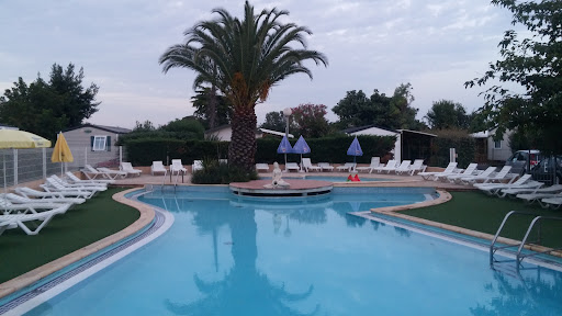We stayed here for one week just recently and for the most part it was enjoyable. The mobile home itself was fairly modern, clean and well featured. It looked like a company called "O'Hara" manufactured them all. It was one of the smallest campsites we have ever stayed in which can be a positive, but as a result there was no nightly entertainment on-site so we had to leave and go off-site any night we wanted any kind of holiday buzz. There was also a lack of street lighting walking back at night to the campsite from all directions. There were always sun loungers to be had by the pool. There was also a gym we could use freely. The beach was a short 10 minute walk at 600m. Then there was Euro Park which was a 20 minute walk. The main strip of restaurants, shops and bars was approx. 15 minutes walk away.||||Our home had 2 bedrooms. In general there was a lack of power sockets and there were none at all in the main double bedroom which was strange so we couldn't charge our phones or plug in mosquito repellents. I got pretty badly bitten as a result. This was not helped by a number of fairly stagnant looking ponds and streams very close by which would have served as a good breeding ground for the little bast@rds.||||Personally I wouldn't return from a mosquito perspective but then I am particularly susceptible to them. Most other residents didn't seem to be affected anywhere near as much as I was. The campsite is also much more isolated than others in the area.||||The onsite restaurant was a tad pricey if compared to the main strip restaurants within walking distance so we didn't eat there.||||Staff were friendly and you could get baguettes and croissants delivered...