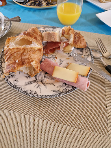 This place is homey with exquisite architectural design. From the ceilings, to the floor, the doors, and even the walls. I am in love. As well as the furniture and interior design. My husband booked the place, so I was totally surprised. We had to arrive much later after a horrible day of our flight being canceled and then the airline losing our luggage. I was very sad and tired. Getting to experience this beautiful place was suddenly all worth it. The bed was so comfy & we all slept so well. Peaceful and quiet. The room is very clean. In the morning we were treated to fresh juices, coffee, pastries, jams, and croissants. Even given guidance on how to start our day to see as much as we could as we were behind schedule from our flight delays. It’s continently located to Omaha Beach, & all the military sites my husband had wanted to visit for years. My kids are also loving the place as they have a dog on the grounds. Super friendly and loves to play fetch with them. Highly recommend this place for couples...