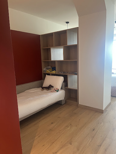 Accessibilité et finitions : l’accès à ce type de chambre implique de monter des marches, sans rampe, ce qui complique la circulation avec une poussette. En termes de finitions, nous avons également constaté que la moquette du couloir présentait de nombreuses taches de peinture, ou que les inscriptions d’étages dans l’ascenseur étaient déjà effritées seulement 1 mois après l’ouverture. Même si nous comprenons que les travaux soient récents, cela ne correspond pas à l’image d’un hôtel premium.