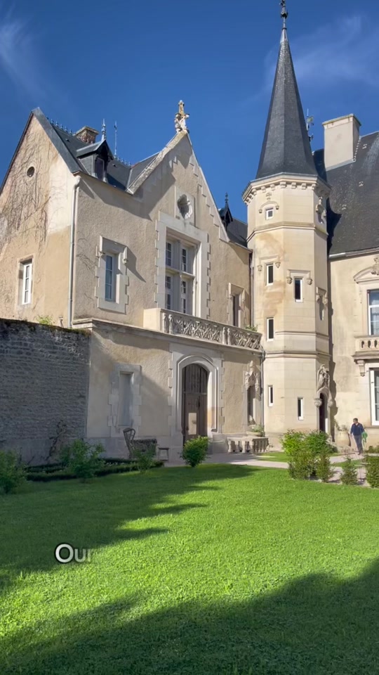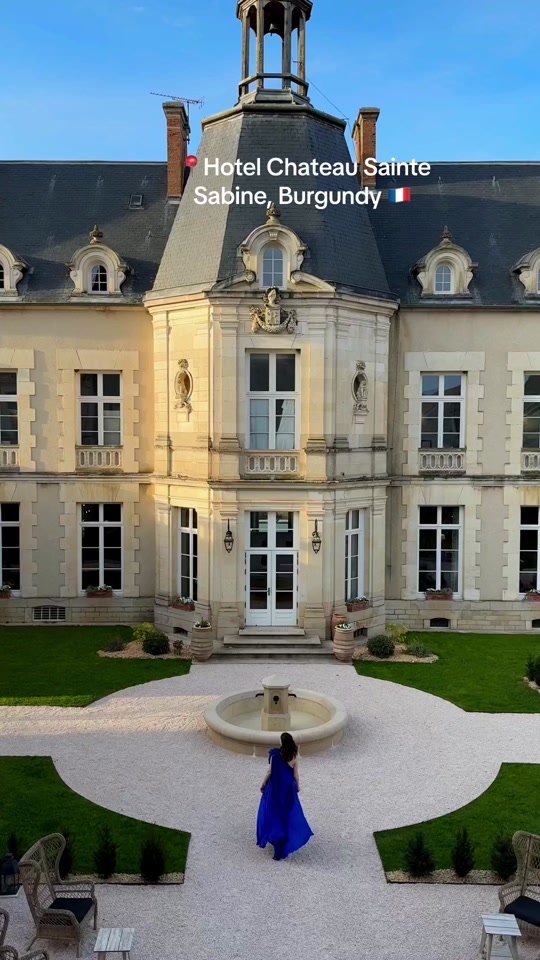 When you check in at the castle 🏰 in Burgundy: @chateau_sainte_sabine spacious rooms with 5-meter-high ceiling, a gorgeous courtyard, a 8-hectare park, terrace with a garden view, a restaurant with reimagining Burgundian classics with seasonal ingredients - all feels like a fairytale! wearing @annefontaine dress #burgundy #chateausaintesabine #visitfrance #annefontaine #swissglam #swissglamontour #destinationdijon #dijonfrance
