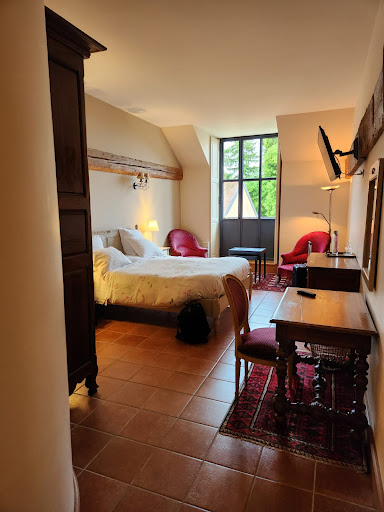 When I first saw this B&B website, I knew we had to stay there. Part of a winery, there were five rooms (and an apartment) and in one of those rooms, they could split a king bed into twins for our friends, so staying there worked. Rooms were clean, updated, roomy, and had lots of natural light. The second night we enjoyed a lightning and thunderstorm playing out in the sky. A walk-in shower featured L’Occitane products (but no lotion and no hair conditioner) and the room had a comfortable king bed with quality linens and comfortable pillows. The towel rack didn’t heat up, the small safe was on the fritz, and there wasn’t any closet area to hang or store clothes. Half the armoire was taken up with the safe and storage items while the other half did not open at all. Not deal breakers but for a long stay, it might wear on a traveler.||The breakfast was limited but sufficient. A croissant was placed on each plate in the morning, scrambled eggs were served on small plates, and the usual meats and cheeses. A small serving of berries and strawberries was allocated to each person. And oh, yes, several cereals. On the buffet table were also these thin, curly, almond cookies. Delicious! I later saw a bag of them at the patisserie around the corner and wondered if they were an area specialty. Because the B&B was part of a winery, the owner does a nightly 5PM pouring of five wines so we scrunched down in the cellar doorway that first night and stepped cautiously down the steps. || The location was ideal as you could view the roof of the Hotel-Dieu Museum from the front of the B&B. It took five minutes to walk to there...door to door. We couldn’t have stayed at a more convenient place! Even the famed La Moutarderie Fallot mustard shop was right around the corner. The hosts were kind...