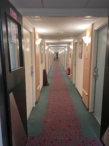 En bas de l'escalier le totem carton gène pour monter ou descendre avec les bagages. La porte vitrée coulissante à un rossignol intégré qui chante à l'ouverture. Ca peut distraire quand on attend... La rénovation peinture de l'époque IBIS a été faite en couleur sombre dans le couloir (1er) ce qui donne un effet tunnel pas très agréable, une couleur claire lumineuse aurait supprimé cet effet. Il n'y a plus de machine à cirer les chaussures ou je ne l'ai pas trouvée. (ni demandée) En déplacement professionnel exposant en salon et en plein air, c'est toujours un plus d'avoir les chaussures propres et cirées.