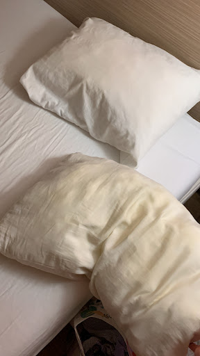 You walk up the stairs of what can only be described as a carpeted prison, it's efficient but certainly lacks a safe vibe and somehow the smell manages to intensify to an almost sauna-like thickness you can bite into. You enter your box room to be greeted by, to be fair, a comfy double bed with a child's bunk bed above with not enough space to sit upright for even the smallest of individuals. You're given one pillow that resembles a loose empty sack of cotton balls that you will not be able to make comfy. We opted for the en-suite, hose down plastic bathroom which is not big enough to actually turn around in let alone get yourself effectively clean. Sitting down onto the toilet with the door closed is like trying to mount a bull at a rodeo with less dignity.