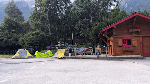 We traveled to Chamonix for the Tour du Mont Blanc and we stayed in this camping 2 nights before the tour and 5 nights after.||||It's safe to say we won't be returning here ever again. ||||First of all, the camping is situated near a river and there's a constant FLOOD WARNING regarding the area.||We found out when we got there, being told by the owner. There are also warning sings throughout the camping. I think this is nice, it adds to the excitement.||||The story for us is that we flew in so we could only bring the minimum with us, meaning one 2 small camping tents (we were 3 people). ||||We made the reservations a few months back and the owner asked us the dimensions of the tents which we communicated clearly. ||We also rented an outlet for 30 euros and one fridge also for 30 euros. ||||Although the owner knew that we would bring only 2 small tents, he didn't tell us that renting a fridge meant giving us a fridge to actually put in our tents which, given the dimensions would have been impossible. ||My impression was the we would be given access to a fridge in some kind of kitchen but that doesn't exist in this camping. ||||So, if you are flying in be prepared to bring a huge 2 room tent in which to install your fridge.||||Regarding the 30 euro outlet this was again useless because the tent pitches only have some outlets that need an adapter to use them with which of course we didn't bring and so could not use the outlets at all.||Both pitches that we got had no outlets anyway with or without that adapter I was mentioning. Even you have the adapter you'll need an extension cord because the outlets can be meters away.||||When we asked for a refund, this cheap owner only gave us 4.20 euros back from the total of 60 we paid for the fridge and outlets. How we calculated those 4.20 euro, only his cheap ass knows.||||Another thing is that this a camping where 95% of people come in with cars or campervans. ||The first 2 nights we stayed there we got a pitch that although had a little bit of grass left on it, it was actually muddy and with lot of holes made by the cars that parked there before.||||The other 5 nights we were even less lucky and we got a pitch that had almost no grass at all and the soil was full of rocks. So we managed to squeeze both tents in a corner with a little bit of grass but we still couldn't insert the tent nails in the rocky soil. Also, if you have a lightweight tent like we did you might damage the floor of your tent because of all the small rocks that are in the ground.||||Another great thing is that none of the pitches have any kind of chairs, benches or light or anything else. So if you're traveling by plane and can't bring your own, once you get out of your tent you'll have the pleasure of standing and relaxing on a dirt tent pitch.||||The cherry on top was that before we left in the tour, we agreed to store the suitcase at the camping. The owner charged us "only" 30 euros for the ten days and in the morning we left he reminded us that "we had to pay him". When we asked him that morning at 8:15 to unlock the door of the enclosure where the suitcase was he told us that he has things to do and we should come back at 8:30 (because the reception opens at 8:30 in the morning).||||In conclusion, we definitely won't be going back to this camping ever again. The owner is a cheap stingy man. It charges you for every little thing and even if he can't deliver, he won't return your money. The pitches are not made for usual camping tents, they are made for cars. There aren't any other facilities like lights, chairs, benches or any kind of cover on the pitches, not even grass on most of them. The only facilities of this camping are the showers and bathrooms. And of course, pray no to rain too hard or for the glaciar across the road to melt completely because the camping...