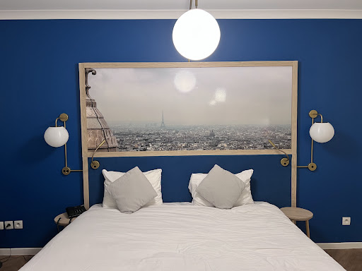 If you are staying at this hotel thinking it's cheap and commutable to Paris, think again as while it's cheap(ish) but service, accommodation and quality of the rooms are appaling and it ruined our stay and didn't even get our refund no matter what. I was sleeping on the floor on duvet from the bad room but manager or the staff didn't seem to care.
