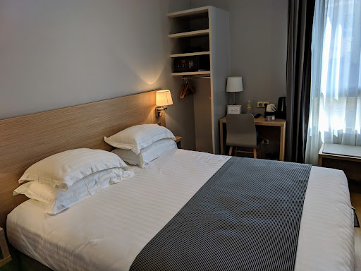 Read moreWe just back from Paris for the first time for Thanksgiving getaway total of 4 nights. For me for the 1st timer I don't recommend this hotel, since it was outside Paris. It was a long commute from Airport CDG (which is located north of Paris). Eiffel Tower itself is located in zone 1, 7th arrondissement and our hotel at the end of Metro Line 12, outside zone 1 or 2, on the border of 15th arrondissement, south part of Paris. We took train to our hotel it was a big mistake even though cheaper $12.50 pp but still the stairs to carry our luggage inside metro station, my gf and I had 1 medium size luggage and 1 carry on, not a good move. ||The hotel is very small and it was on the small street, suburb of Paris. Inside is clean but still not my ideal of hotel for the first time visiting Paris. The nice part is Metro 12 right on the corner, 50m/164 feet, this metro connecting to zone 1/2 inside Paris. Also, near little store called Monoprix equivalent Target here. There are 2 cute restaurants on the corners. Also bakery which we didn't see until our last day. Not sure about your package but ours didn't include resort fee, so we had to pay addl $22-23 pp. Since this is a small hotel the room is small as well but clean but the bathroom is bigger so is a plus. The AC didn't work, we cannot lower it, so we had to ask FO to shut off our the ac/central so the room can be cooling, a bit stuffy at a time, Sometimes we open our window to get a fresh air/cooling the room. Also, no mini fridge, which is no biggy since we will get a free breakfast anyway at 7ish am. :") | |On the way back we took Uber, cost us $55 + we put 5e tip. Also, we find it cheaper to use Daily Passes on metro only cost us $9.15 (refill using Navigo) unlimited rides around Paris. Definity we will visit Paris again next time and will stay longer and around arrondissement near Le Marais. À bientôt...