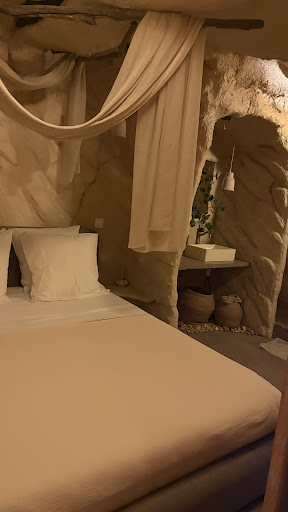 Le logement est unique : on a vraiment l’impression de dormir dans une grotte, avec une décoration magnifique et ultra Instagramable à chaque coin. La piscine souterraine, intégrée à l’ambiance de la grotte, est absolument splendide et a fait le bonheur de toute la famille 🌊✨.