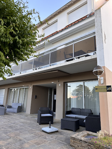 We enjoyed our stay here while visiting the lighthouses in the area. It's just a short walk to the St. Mathieu lighthouse and there's a nice hiking path along the coastline. Our room was on the ground floor, a good size, bright and with a second door out onto the patio area. The room had a double bed, closet, and a desk area. The bathroom was around the corner but open to the room - not a lot of privacy. Oddly, the toilet was in a small room by itself opposite the entry door to the room. As for amenities, there was a kettle with tea and coffee supplies, a TV, and password protected wi-fi. The wi-fi was out the first morning, but restored by the afternoon. There are a few outlets you can use for recharging electronics. The patio area outside the room surrounding the property is very pretty and chairs and tables are provided. Parking is free, but there are just a few spaces on the property. The hotel is back off the road a bit, but...