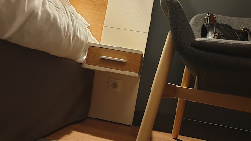 Read moreThe hotel was very pleasant, with a terrace, bar and at the back a breakfast room. The public car park at the front had about eight parking spaces at the side of the hotel reserved for residents. The decor was largely grey, black and white. Sadly, there were tiny chips out of the dark grey woodwork, everywhere. We had a family room, which was all that was available when we booked. It consisted of two bedrooms, a separate toilet between them and a bathroom off one of the bedrooms. |The toilet was tiny, very narrow and only about 40cm from door to pan, with no extractor fan.|The head-height fitting was loose so that the shower head could not be put in it. Although it took us only a minute to screw this back together, we shouldn’t have had to do this - the issue should have been picked up by cleaners, reported and sorted. |The lights had no, or only wire, shades and were much too bright/harsh. |A kettle and a small fridge (as we had in other hotels) would have been good. Breakfast at the hotel was 12 euros, with tea/coffee, juice, cereals, bread/pastries and preserves, eggs, charcuterie, cheese,...