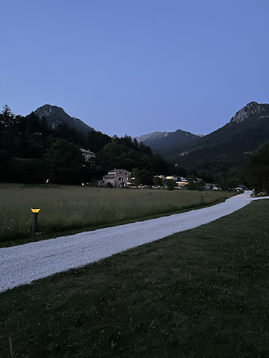 Read moreBella struttura dedicata dalla proprietaria totalmente agli ospiti. Lungo la strada ci sono due indicazioni su un pannello di legno che segnalano gli ingressi perché il terreno è così grande che, con la macchina, si può entrare da entrambe le parti. Chi arriva per il Camping con roulotte o simili credo possa entrare soltanto dall'ingresso che va direttamente nella tenuta. Ci sono due strutture molto vicine: una più rustica con pergolato e una 'palazzina' verde. Noi abbiamo dormito all'ultimo piano nella palazzina (non c'è l'ascensore ma le scale sono agevoli). La camera n. 4, con 3 letti singoli è arredata in modo semplice, è pulita e la finestra ha la vista sul grandissimo terreno. Il bagno è organizzato in un angolo della stanza: il gabinetto separato da una porta mentre la doccia e il lavandino sono racchiusi da una muratura. Asciugamani a disposizione. Al primo piano della palazzina c'è una grande zona adibita a cucina con grande tavolo e angolo relax. Sempre aperta a tutti gli ospiti, è perfettamente arredata di TUTTO (piatti, tazze, posate, pentole, tostapane, microonde, frigo, ecc) per poter preparare colazione/pranzo/cena ma dovete comprarvi il necessario da cucinare. Il posto è silenzioso e rilassante; comunque il paese di Castellane (assolutamente da visitare) è a circa 1 km con negozi e ristoranti. La proprietaria, sig.ra Cathy, è molto cordiale e disponibile anche al telefono per qualsiasi problema. Parla in modo molto capibile sia inglese che francese mettendo a proprio agio gli ospiti. Prezzo onesto.||Unico piccolissimo difetto: la password della Wi-Fi non è quella segnata sulla porta...