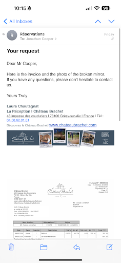 Read moreAVOID AT ALL COSTS. We stayed at the hotel last week. 8 hours after checking out and settling our bill we were charged 350 euros to our bank card by the hotel, a charge that was not authorised. When I called to query the charge I was told it was because of ‘the broken glass’ in our bathroom. I confirmed that there was nothing broken in our bathroom at the time of checkout. The hotel sent me a picture of a mirror (could have been any mirror) with a crack in the corner. I told them this damage was not caused by us, and also noted that the photo could have been from any mirror in the hotel. I asked for a refund and for the hotel manager to contact me via phone to discuss and resolve the matter. The hotel have gone on to completely ignore my emails and requests, despite me emailing them 6 times to follow up. I asked for them to confirm receipt of my emails and they merely replied saying that the manager was having a ‘mailbox problem’. Seems clear now that they are running some sort of scam operation and I have had to contact my bank to raise a dispute regarding the authorised payment. Absolutely shocking customer service. Avoid at all costs and wish we had...