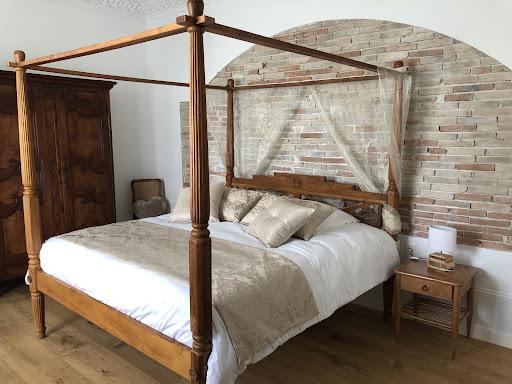 La chambre est grande, le grand lit à baldaquin est confortable et très adapté à une nuit en amoureux, rénové avec le charme de l’ancien. La vue est très jolie, dégage sur la vallée du rhône!