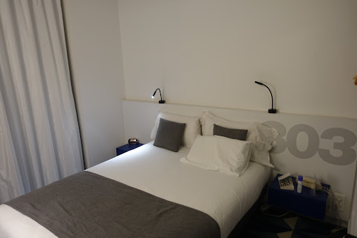 Read moreI would really like to have given this place a three but our sleep experience was terrible. It’s well situated and we made use of a space in the parking garage (10 euro). We were given a room that overlooked the road and yes, we found the translucent blue bathroom door a little unusual to say the least. Safe didn’t work. Only one mug and one teabag for two of us! Our bigger issue was a nightclub just down the street. Despite the double glazing, the noise made by groups of clubbers leaving the place between 12pm and 4pm was horrendous. It appeared a good few had their cars parked opposite the hotel and decided to have long and loud conversations with each other despite the time. Traffic noise was pretty constant as well. Two very tired and irritable customers and yes, we still got charged for the parking! Our advice? If you are staying here, make sure you avoid the rooms...