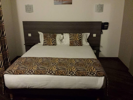 My husband booked this hotel for us for one night during our visit to France to watch the Tour de France. What a fantastic hotel - such a novel idea. The rooms are set in blocks which are all themed on different countries. We were in Egypte - which is our favourite holiday destination! The rooms are basic but very comfortable - a choice of double or twin bed, a walk in shower/wet room and a small wardrobe, TV and if required free Wifi . Lovely grassy areas and two comfortable garden chairs to sit out and enjoy the sun. Right next door is a McDonalds and whilst breakfast isn't included in the price - they do a nice breakfast for Euro 7. There is plenty of parking and the gate is locked but accessed by a security number which you are given with your room key. The location isn't brilliant and we never got out to explore so can't say what is available. However on our journey home we passed through Cholet which is a sprawling town with potentially plenty of places to eat - Buffalo Grill wasn't too far away.||||All in all thoroughly recommended and if we return to the Vendee in the future we will definitely book this...