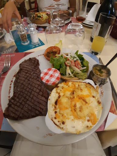 We came with our small kids after a lengthy walk in the sun ( 37 centigrades) we all were thirsty, especially the kids. Wanted to quickly sit down and drink something. The female owner denied: no way to serve drinks only. „ I cant take care of guests who order food and guests who only order drinks“. The location had about 8 tables outside and 12 tables inside. Only 2 tables were taken, so definitely no overextension in sight. C est une hostilite incroyable. Je suis francophone et tres tres francophil, mais cest un traitement...