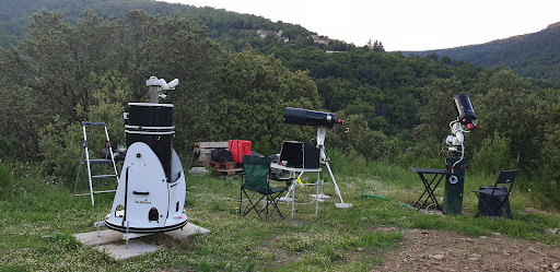 Nous avons déposé notre matériel sur la zone d’observation dégagée aux pieds du gîte, celle-ci est équipée d’électricité. La nuit noire des Cévennes, nous a permis d’admirer la superbe voie lactée et les objets du ciel profond.