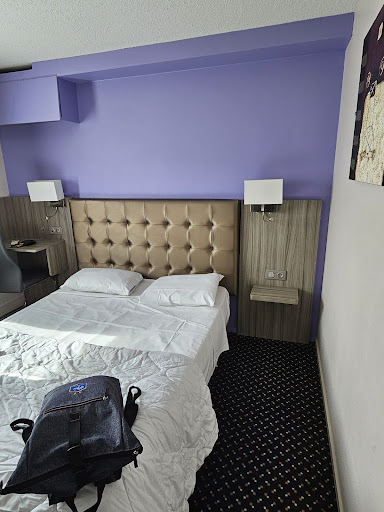 When traveling through France from The Netherlands to Spain in June 2017 I booked this hotel. Warm welcome by English speaking receptionist. I had a large modern decorated room on groundfloor. Very good functioning airconditioning. Bathroom is adjusted for elderly; f.e. folding chair in shower. Dinner buffet was from 19:00 - 20:30. For roughly 18 euro i had a 3 course dinner. (excl drinks like nestea E 2.90). For dessert I had a local made Basque pie and some local made cheese which I can recommend. Breakfast was also buffet; fresh bread etc. I slept well in this hotel. Another advantage: free parking on own terrain. There is also free wifi, but only for one device. When checking out I received some discount tickets to visit 'chateau Foix' and the tip to visit 'Chateau Roquefixade' on my way to Lavelanet. Unfortunately i never made it to chateau Foix, because it is a crime to find a parking area on Friday when there is a local market in town. One parking was even closed because of...