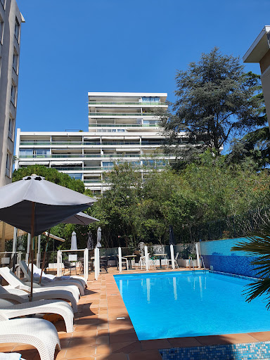 The Hotel is Good, it's a old style. The rooms are kind of small, we were 3 people living in it and the extra bed made the room even smaller. There is an locker in the room but none of us could get it to work. It seems to be a standard to have shower and bathroom separated. The showers works and are easy to adjust temperature. Every day you will get soap, shower gel, shampoo and other compliments, which means you don't have to bring any of those items with you. The air conditioner works great and helps to keep you cool during the night. The view are okay as you can only see a street and some stores. And surprise for us was the fact that there were only 1 power outlet, which made it hard for 3 persons to charge at the same time. The television is good, its HD and have a vide of variety of channels. The rooms get cleaned every day. There is also a lack of hangers to hang wet clothes on. The rooms are very loud as you can hear other ones in the corridor. The elevator is scary the first time as every time it stops it shakes and then opens the door. The reception is well air conditioned and big. The staff are very nice and helpful. They unfortunately only work until 11 p.m. There is a bar, and a pool. The pool are very good it's not very big but it serves it purpose, it goes between 80cm to 2meters deep. The breakfast is served between 7 and 10. Its a wide variety of dishes and breakfast alternatives. Every day there is newly baked croissants :) The hotel is located around 20 minutes walking from the beach, which makes it perfect. It sort of cheap and is situated sort of close to the beach. There is no dinner or lunch service, but there are some restaurants close. We chose to go down to the beach for restaurants as they had higher standards. The train station is also located around 15 minutes away, all of this is down street from the hotel. We took the train multiple times to Monaco and Nice for around 10€ each. All in all a good experience, would go...