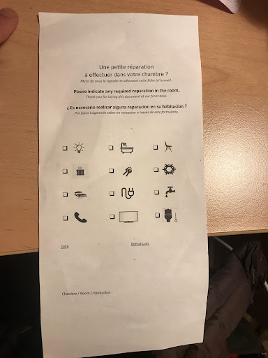 One major advice before going to eat breakfast: leave your room 10 min earlier as you will be stuck waiting for the elevator / in the elevator itself (very slow; stops at random floors). The next obstacle you'll encounter is Éric. This older man tries to do his best to keep you from entering the breakfast area, if you're only half a minute late (breakfast "officially" ends at 10.00 AM). This is especially weird when other hotel personnel tries to tell him it's still okay to go there at 10.01. He just doesn't care. At least we were given some croissant and coffee from the bar by other staff. If you somehow manage to pass Éric, the breakfast itself isn't too overwhelming. Two kinds of ham and cheese, some bread and croissants, yoghurts. Sadly no opportunity to get fresh omelettes. For this price it's okay.