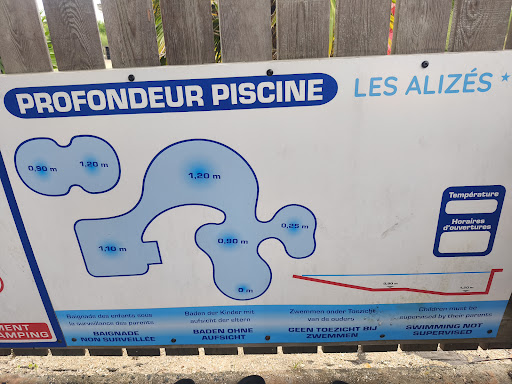 6- Les installations Les alizés dispose d’une aire de jeux avec toboggans pour les enfants située en face du restaurant ( ça c’est top pour les enfants qui ne veulent pas rester à table ils peuvent jouer tout en étant surveillés par les parents depuis le restaurant) il y a aussi les structures gonflables, la piscine couverte, les toboggans aquatiques et la piscine extérieure ( chauffées pour les deux )