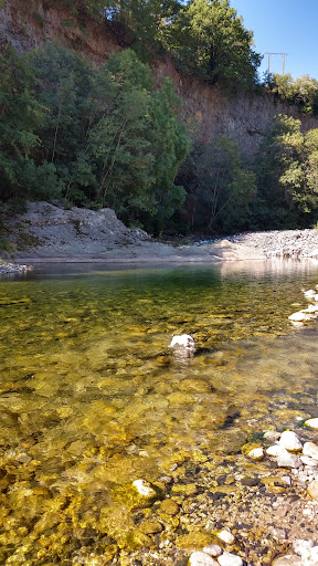 Read moreDit deel van de Ardeche is prachtig: weg van het massatoerisme in het zuidelijker deel en met heel helder water in de rivier. De campingeigenaren hebben een mooi strandje/zwemplek gemaakt bij de camping. Het water is diep en groot genoeg om baantjes te trekken als je dat wilt. De waterval en de stenen om dammetjes te bouwen zijn leuk voor kinderen. Er is wat animatie, maar niet overdreven veel: 1x/week ouderwetse houten spelletjes, 1x/week schminken of zo, 1x/week een concert en 1x/week een karaoke avond. Het merendeel van de gasten zijn Nederlandse gezinnen. De camping ligt aan de doorgaande weg van Aubenas naar Le Puy. Dat betekent: dag en nacht geluid van optrekkende zware vrachtwagens. Het stopt niet. Ongelooflijk hoeveel zwaar vervoer er door de vallei moet rijden. Bij een volle camping heb je daar niet zoveel last van, maar als de camping leger wordt, hoor je de vrachtwagens continu op alle plekken, zeker als op het einde van het seizoen ook de waterval opgedroogd is... Eten in het restaurant is goed en de prijzen zijn zeer redelijk. De openingstijden zijn beperkt van 15/16u tot 23u. Overdag kun je ijsjes en koude blikjes kopen bij de receptie, geen koffie helaas. Je krijgt gratis wifi (over de hele camping, voldoende kwaliteit) voor 1 toestel. Wil je meer? Voor 1 euro/dag/toestel kan je bijkopen. Tot nu konden we altijd het kraanwater van campings gebruiken als drinkwater. Op deze camping zijn we na 1 dag overgegaan op flessen. Het kraanwater (ook in de karaffen in het restaurant en waarmee alle glazen gespoeld werden) rook en smaakte naar rivier: een grondachtige/ algensmaak. Misschien raak je er aan gewend als je daar woont, maar ik vond het heel vies. Jammer. Conclusie: deze camping heeft veel positieve punten maar enkele mindere waardoor ik er niet gauw weer terug...