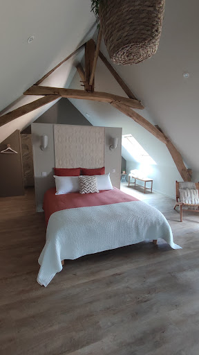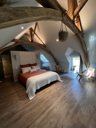 La suite Manaë : L’atmosphère de la suite est chaleureuse et cocooning. La présence d’un poêle à bois ajoute un charme indéniable, aussi bien sur le plan esthétique que thermique (bien que la chambre soit déjà chauffée).