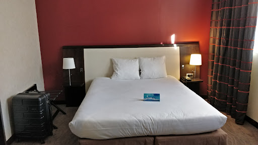 Tried calling to book a room and ask questions about parking with this location and was put on hold several times and eventually asked if I held a membership to AccorHotels, I should just book it online myself. Unfortunately, as I was in transit on my way to Le Mans I could not make the reservation, so I had to pull over to accommodate myself. When we arrived to the hotel, I confronted the receptionist I spoke to and recieved a very indifferent apology. After checking in late we quickly proceeded to the restaurant. To our surprise all the glasses on our table were hazy, cloudy, so I cleaned them with the cloth napkins. Our water karafe was worse. Being very tired and hungry we ordered a cod fish with rice dish. We recieved a small piece of cod and salmon in each order. When asked why we recieved salmon in our dish, the waiter responded that is how it is served. Strangely however, it was not in the Menu description. We suspect, they ran out of cod and decided to add salmon to the small piece of cod. The good news, the rooms are modern, quiet and clean. Shower, bathroom is spacious (no bidet), well lit and have a full size blow dryer. Decorated nicely, the rooms are very comfortable with extra pillows in the closet. Rooms are equipped with an electric water kettle and instant coffee and tea. Soundproof rooms with quiet air conditioning units, comfy beds, pillows and linens make sleeping very comfortable. Lastly, three or four English language news channels provided. The hotel has two secured...