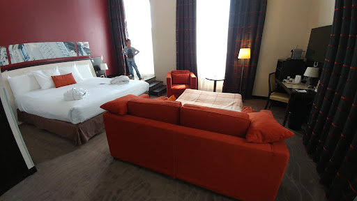 Read moreStayed for one night to break up the driving from South to North France. A great central location. Parking directions a little confusing to find and access, made more so by a one-way street. Upon asking the receptionist all was clear. There is both underground and surface-level parking - each accessed via a different gate. We used the surface-level parking, plenty of spaces and seemed secure. Super welcoming and friendly receptionist. The room was tired and basic. The bathroom was spotlessly clean the bedroom less so - the room smelt musty, you could see the streaks of something on the wall behind the bed, where it had been wiped down but not very thoroughly and the curtains had some marks/stains which looked dubious! I absolutely hated the plastic style fitted sheet on the bed, it made for an uncomfortable, hot sleep. Towels in the bathroom were thin and had seen better days. There was no toilet roll, instead there was a dispenser that gives you a sheet at a time. In a four star hotel?! Breakfast was a fair continental selection which was replenished as needed. I think the layout of food items could be improved in terms of cross-contamination/allergies etc my husband doesn't eat meat or fish, so having the bacon and scrambled egg in the same bain marie and boiled eggs resting on top of the salmon...