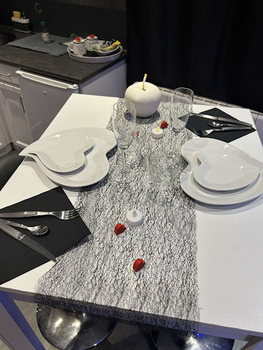 Read moreSĂ©jour du 16 fĂ©vrier dans ce lieux rendu magique par ses propriĂ©taire. En effet l'accueil autonome trĂšs bien structurĂ©e. A l'ouverture de la porte d'entrĂ©e vous ĂȘtes accueilli par une ambiance olfactive des plus agrĂ©able, d'une douce chaleur d'un fond musical et d'une ambiance lumineuse trĂšs bien Ă©tudiĂ©e. De quoi rapidement vous mettre dans une dĂ©connexion totale des soucis du quotidien. Tout est pensĂ© par les propriĂ©taires, un visuel de feu de cheminĂ©e, un jacuzzi, une lit rond une balancelle, une banquette, une salle d'eau ouverte avec une douche Ă l'italienne en ciel de pluie, une boite Ă accessoire, une boite Ă jeux de sociĂ©tĂ© et dans la kitchenette au frais la commande traiteur. Un panier PDJ et la livraison de pain viennoiserie le matin Ă partir de 7h15 sans avoir d'intrusion dans votre univers d'un soir ou plus, ni besoin de sortir au top du top. Un seul point nĂ©gatif la taille des peignoirs qui aurait Ă©tĂ© plus grand pour mon gabarie... Ceci n'Ă©tant qu'un dĂ©tail car franchement le reste est pensĂ© et nous avons passĂ© une agrĂ©able nuit. Merci Ă nos hĂŽtes dont le soucis de faire plaisir est bien prĂ©sent. A...