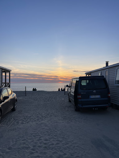 The reception was friendly and helpful, and the people working in the snack bar were absolutely lovely - and very hard working! It's possible to order bread and croissants for the morning. Food in the snack bar is simple but really good. ||Watching the sunsets sitting on the edge of the dune at the edge of the site is a highlight. The pitches for tents and campervans (we were in a van) are quite wide but pretty close together back-to-back and so it's best to get one at the edge of that non-cabin part of the site if you can (we had a tent behind us and although they were quite considerate, they did like to watch action movies at 3am - albeit at low volume). Most of the site is given over to cabins - but it doesn't at all feel like "cabin city," as some more commercial ones do. There is some criticism of the facilities in other reviews, but we found them absolutely fine - clean and well-maintained. ||The pool is fabulous and not at all busy in our experience (our stay was partly in high season). There were some children around but the site has a more adult feel than most, even during school holidays. Surfers and retired people account for most clients I imagine.||It's easy to walk or cycle to Soulac-sur-mer in one direction and Amelie in the other - where the wonderful restaurant L'etoile de Mer is not to be missed. There is a little shop there (Vival) with excellent bread and pastries, and a Lidl is in walking distance too - in the direction of Soulac. ||Just up the road there is a fabulous beach bar - it's quite an experience to go there for a seafood selection and wine while the sun goes down.||We liked the spot so much we extended our stay twice, and we will certainly...