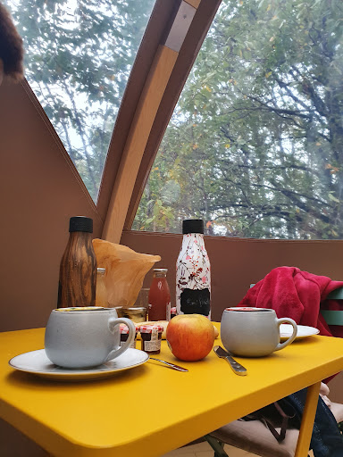 Read moreDans un cadre magnifique, la propriétaire nous a accueilli et fait découvrir le logement atypique "un Wigwam". Malgré une nuit fraîche, nous n'avons pas du tout eu froid car la literie est de qualité et la couette largement suffisante. Nous avons profité d'un bain nordique (sauna, douche froide et bain à 40°) dans un endroit détente isolé en pleine forêt (Laura s'est démenée pour démarrer le feu du Sauna, car il est chauffé au bois). Les sanitaires sont propres et pas très loin des Wigwam. Le petit déjeuné est bien, avec des produits locaux. L'environnement est calme, agrémenté des piaillements des oiseaux, du chant de "Pomme" l'oie qui nous accueille et du coassement des grenouilles. Mais au couché du soleil, plus un bruit pour passer une bonne nuit. Nous avons été très bien conseillé par Laura pour découvrir les différents sites à visiter dans la région. Nous conseillons...