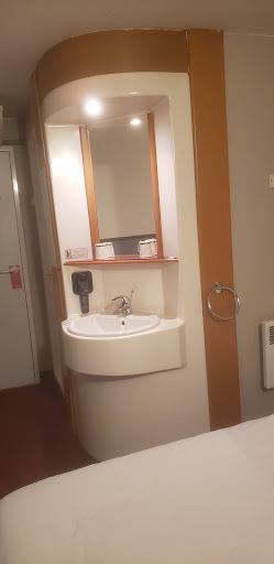 We picked the hotel based on price and proximity to Lyon airport.||This is an economy hotel, so don’t expect the Ritz. The location is not ideal, being on a retail park, but it is quiet at night.||The hotel staff are very friendly and helpful. The hotel is relatively small, having only two stories.||The rooms are reasonable in size, clean and comfortable, if not a little dated in their decor.||The bathroom and room were very clean, and the bed was comfortable. The bathroom left a little to be desired, and the shower could have been improved, but the water was a comfortable temperature, even if the water pressure was lacking. ||The sink in the room was not brilliant, but this is an economy hotel.||We did not partake of breakfast, but what we saw did not suggest it was good value for money.||The WiFi was reasonable, but not perfect.||The TV worked, but did not have a great range of channels.||Overall, reasonable value for money, clean,...